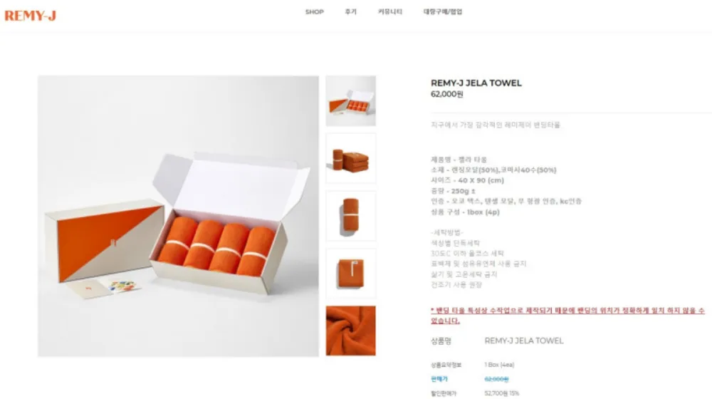 레미제이 공식 홈페이지에서 페이스 수건 외에 다양한 제품도 바디 타올, 핸드 타올, 룸 슈즈 등을 판매하고 있는데, 구경할 맛이 쏠쏠하네요. 다가올 봄에는 남편이랑 커플 룸슈즈 한번 구매해볼까봐요! :)