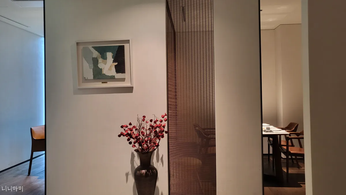 우선 저는 동류수에서 점심 회식 장소로 딱 적합하다고 느꼈고, 대체적으로 만족스러웠어요. 음식의 맛과 양은 적절했고 가격대도 부담스럽지 않아서 손님 접대 하기에도 좋을 것 같아요. 상견례를 하기에도 딱 좋은 장소라고 생각하는데 그 이유가 완전히 꽉 막힌 프라이빗한 룸은 아니더라도 적당한 개방감이 있으면서 가려지는 구조라, 너무 적막해서 뻘쭘하지도 않고 남의 시선 걱정하지 않아도 되니까 장소 측면에서는 최소 90점이라고 생각해요! 멋진 뷰가 없는 것은 조금 아쉽지만요. 나중에 계산하러 가면서 보니 원앙 세트도 준비 되어 있길래, 상견례 장소로도 많이 방문하는구나 싶었어요.