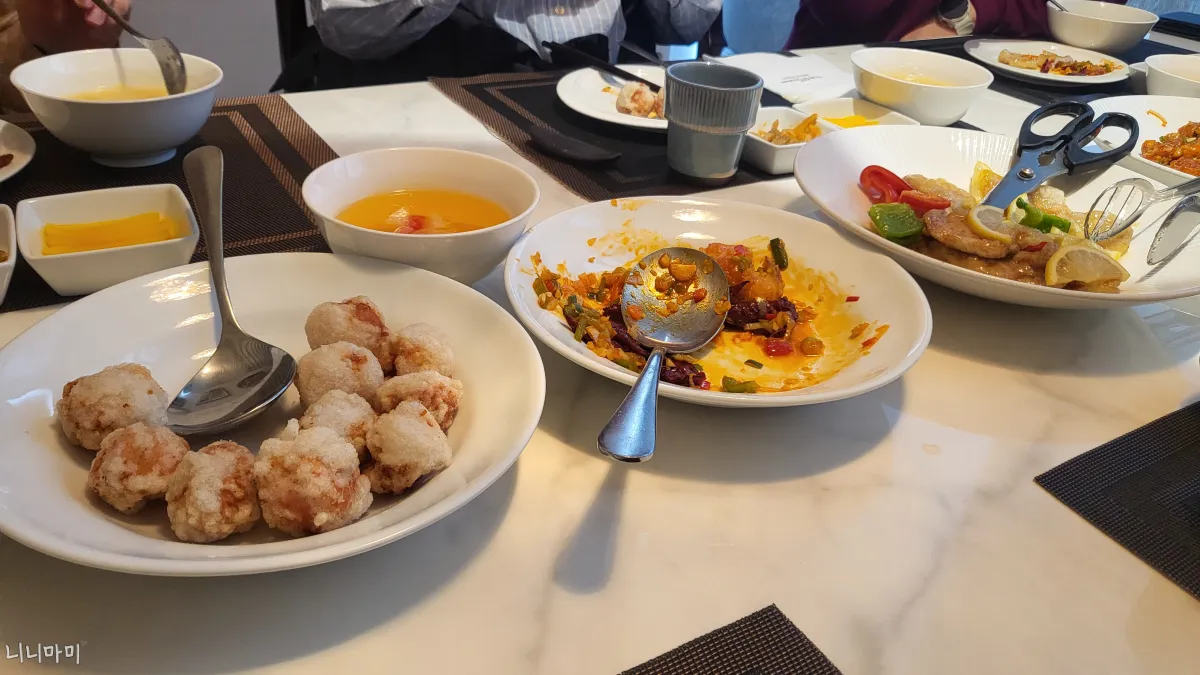 직장 동료들이랑 다 같이 있다보니 음식 사진을 많이 찍지 못해서 좀 아쉽네요. 심지어 깐풍 새우는 너무 맛있어서 벌써 동이나서 빈 접시 상태... 정말 너무 맛있었어요.
